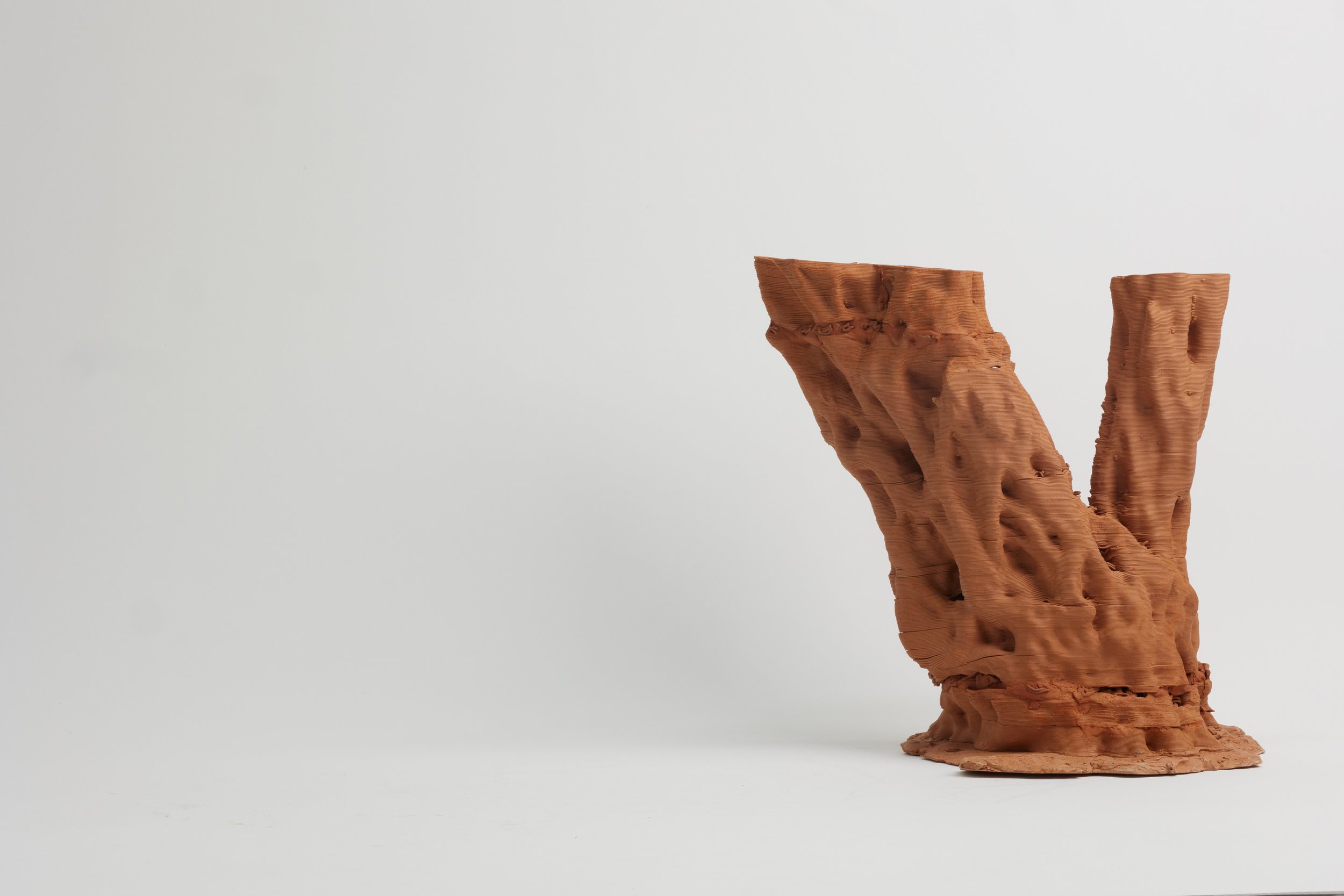Each tree was 3D-scanned and passed through generative algorithms that broke its form open -deriving new morphologies from centuries-old growth. These were materialised at scale through clay 3D printing: the tree uprooted from its soil, translated into data, reshaped by code, and returned to earth as something transformed yet unmistakable. A body carried across borders in the only way left